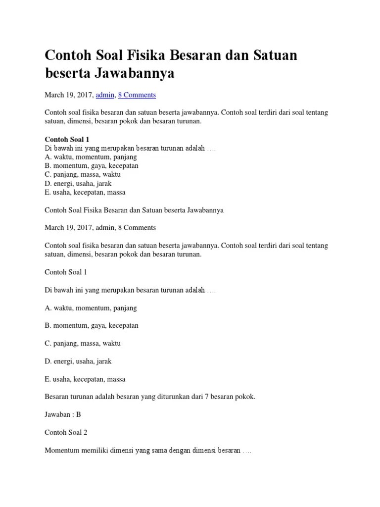 17.06.2021 · download soal besaran dan satuan. Satuan gaya adalah newton (n) atau dyne. Jika berkenan bisa subscribed blog ini, atau memberikan kritik, saran dan pendapat di kolom komentar di bawah. Sedangkan alat yang digunakan untuk mengukur gaya disebut dinamometer atau neraca pegas. Terima kasih baca juga : Download file dalam format.doc atau.pdf agar mudah dibaca dan tertata rapi lengkap dengan peta konsep dan prasyarat materi. Modul & latihan soal besaran vektor & skalar kalau kamu tertarik untuk mempelajari materi fisika tentang besaran vektor & skalar, simak pembahasannya di sini. Besar perpindahan sama dengan jarak tempuhnya, kecepatan sama dengan kelajuannya dan percepatan sama dengan … Soal utbk tka saintek fisika 2021. Pengertian gerak lurus (gl) adalah merupakan gerak dengan lintasan lurus. Latihan soal ipa materi gaya kelas 8 smp/mts kurikulum 2013. Contoh soal dan pembahasan ini dari berbagai penerbit buku seperti erlangga oleh michael purba ktsp 2006 dan unggul sudarmo kurikulum 2013, yudhistira, platinum, grafindo, phißeta dan esis. Gaya merupakan suatu tarikan atau dorongan terhadap benda.